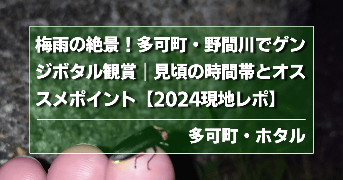 今回は、2024年6月に家族で訪れた兵庫県多可町の「野間川」でのホタル観賞レポートをお届けします。