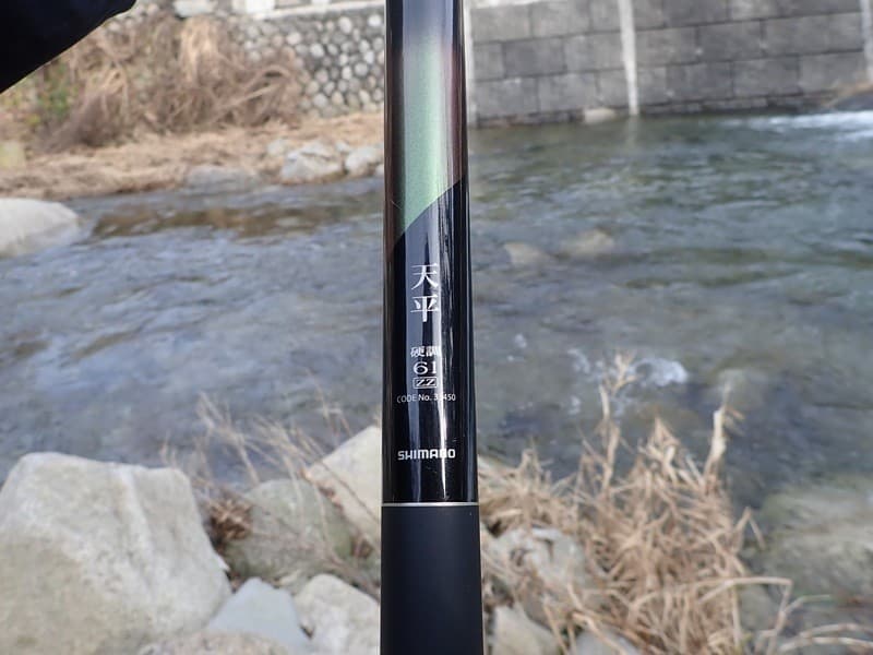 防寒着のありがたみをひしひしと感じながら、愛用しているシマノの渓流竿「天平(てんぴょう)」を静かに構えます。