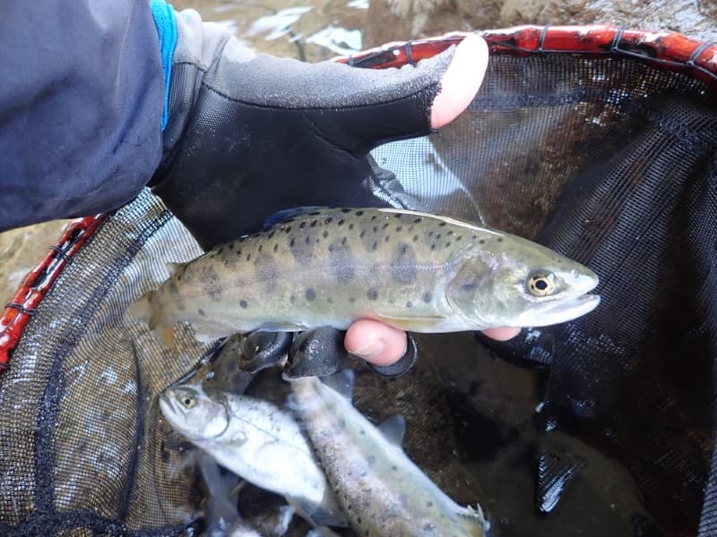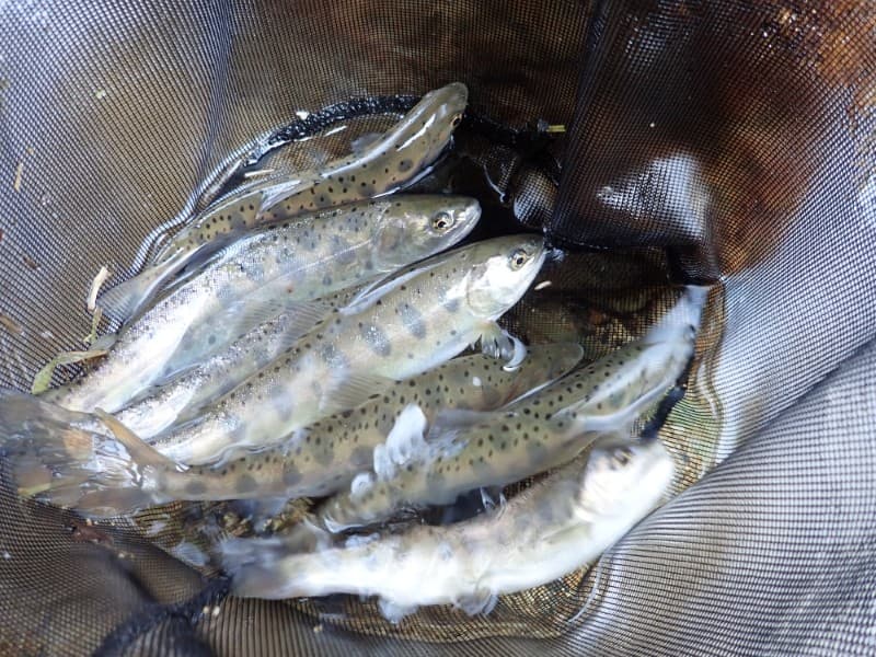 あっという間に放流されたヤマメたちは下流へと流されていってしまいました。